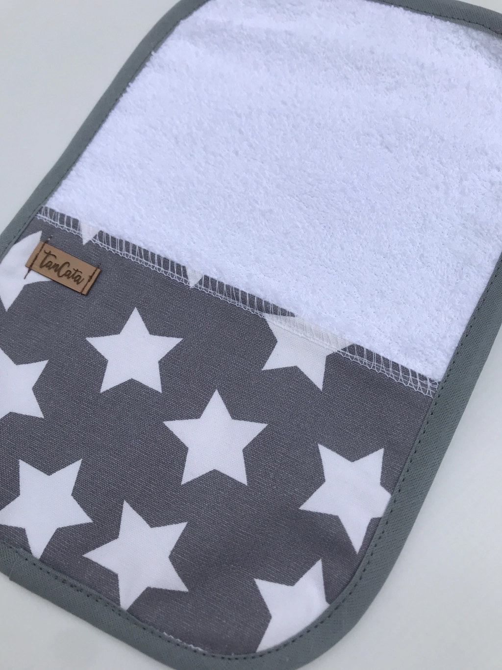 Confeccionadas en toalla doble felpa 100% algodon y detalle estampado en gabardina o pique. Terminación en el borde de bies.