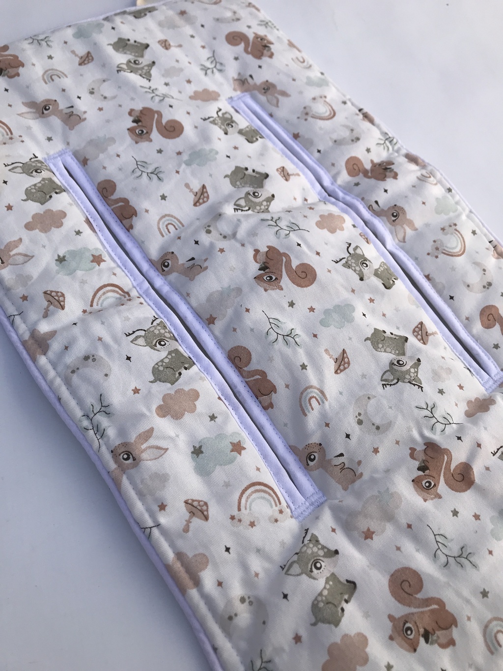 Relleno de wata siliconada de 2 cm y confeccionado en gabardina estampada 100% de algodón.