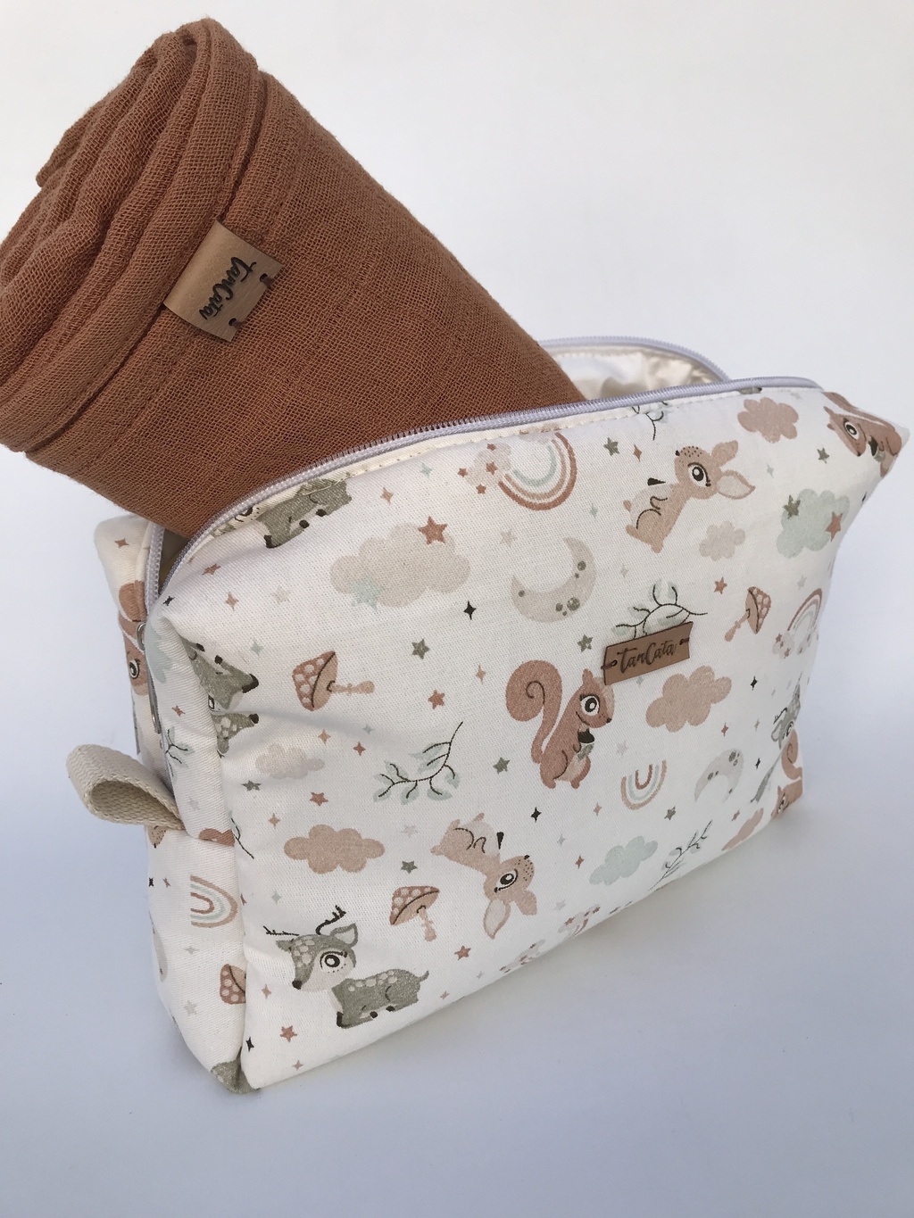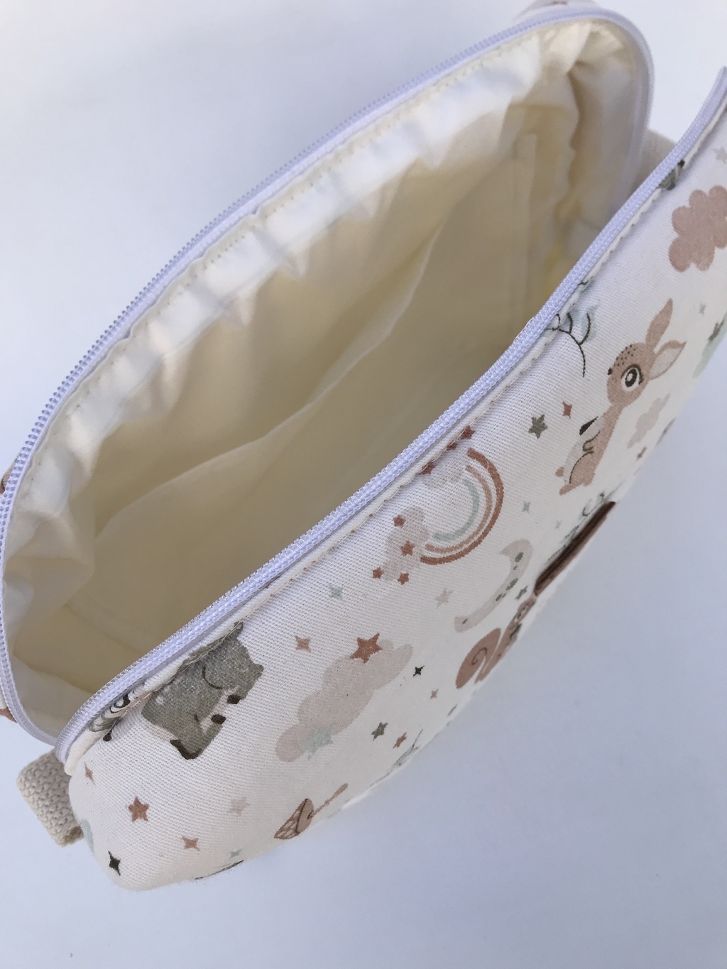 Práctico y bello neceser para que puedas transportar todo lo necesario en forma ordenada. Es el complemento ideal para tu mochila maternal.