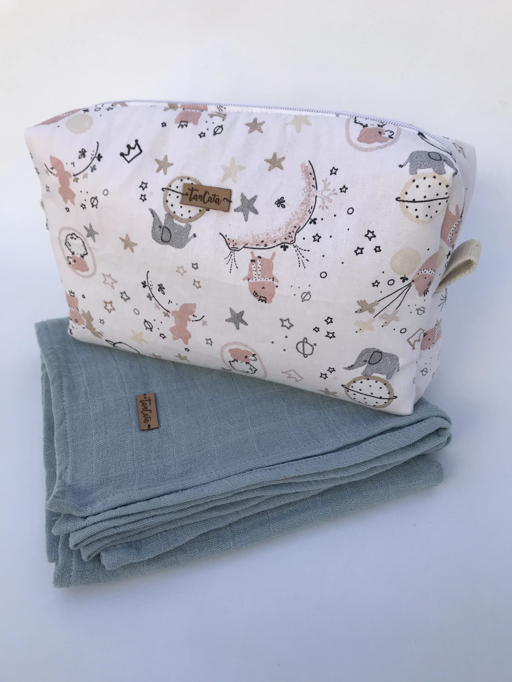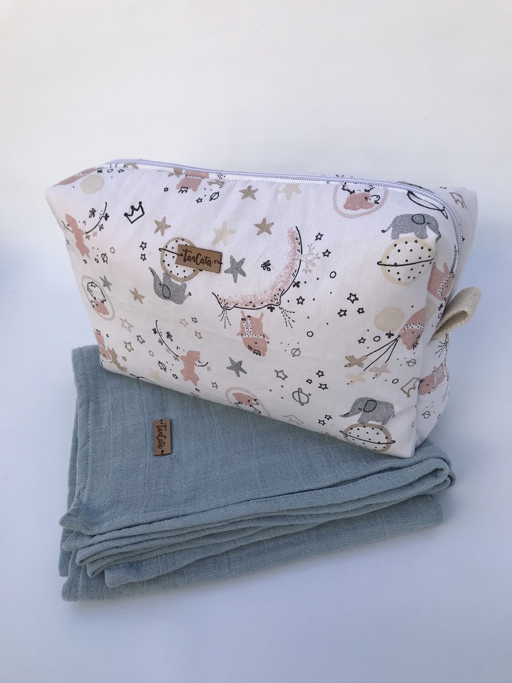 Práctico y bello neceser para que puedas transportar todo lo necesario en forma ordenada. Es el complemento ideal para tu mochila maternal.