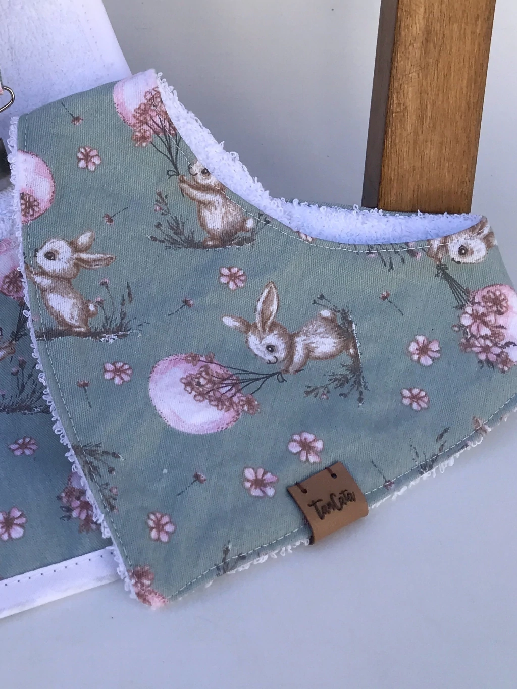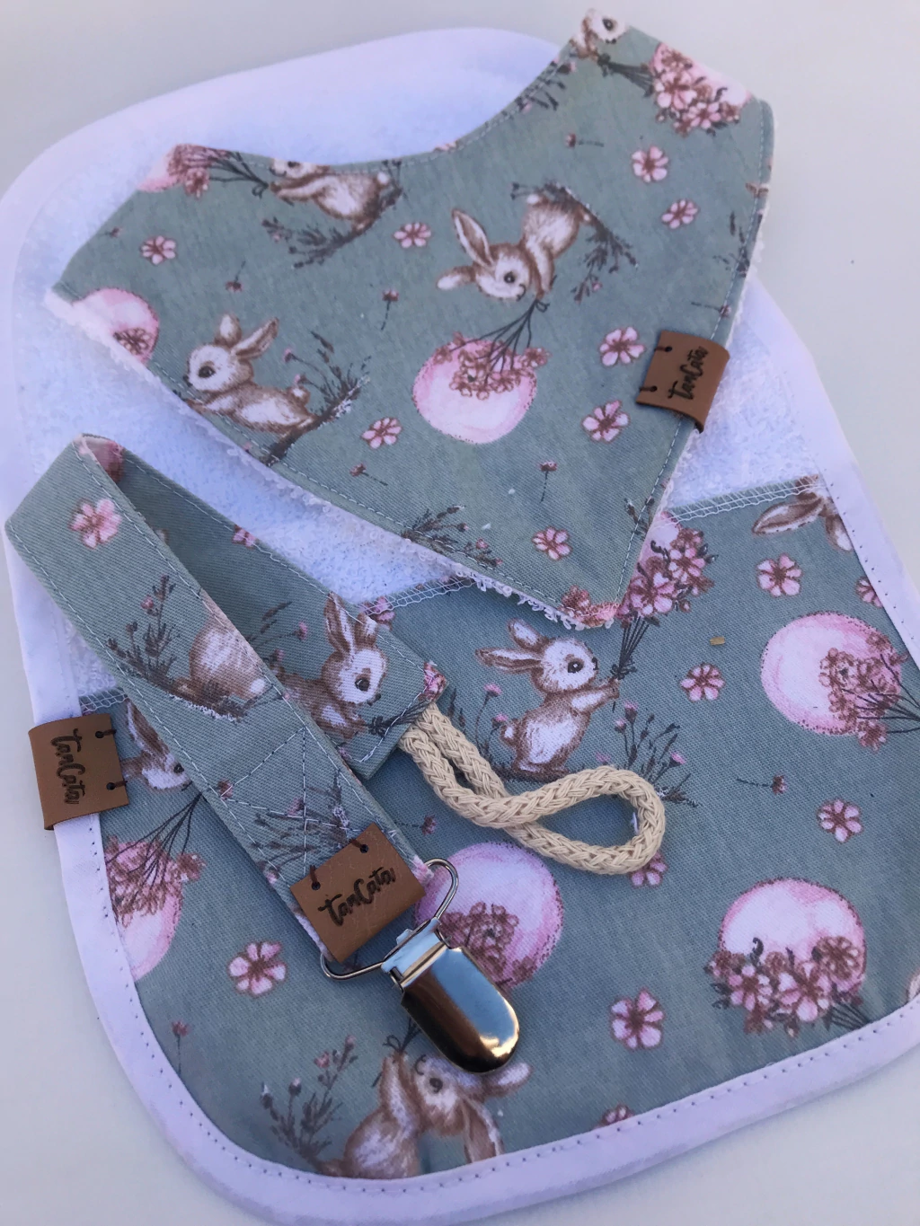 Babero bandana, babita y portachupete. Prácticos y siempre necesarios.