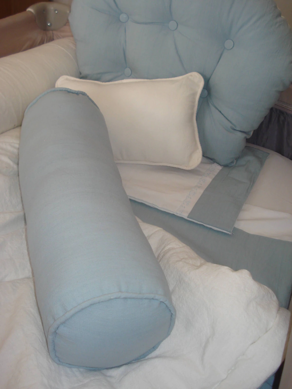 👉 1 Almohadón cilindro en color y 1 almohadoncito rectangular en blanco, todo en tusor 100% algodón.