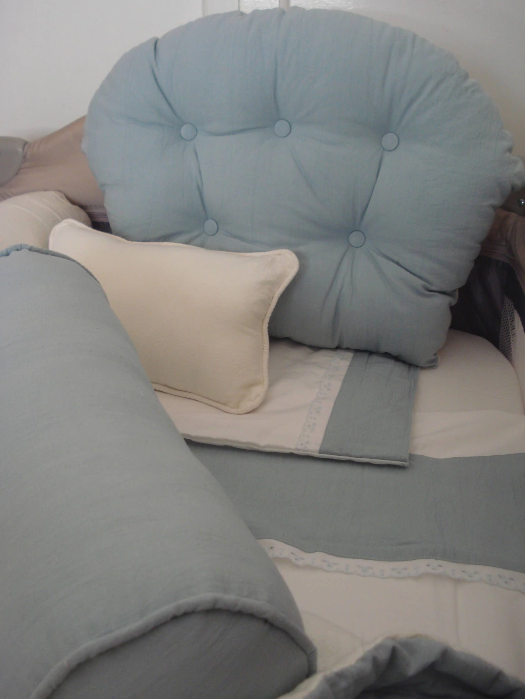 👉 1 Almohadón cilindro en color y 1 almohadoncito rectangular en blanco, todo en tusor 100% algodón.