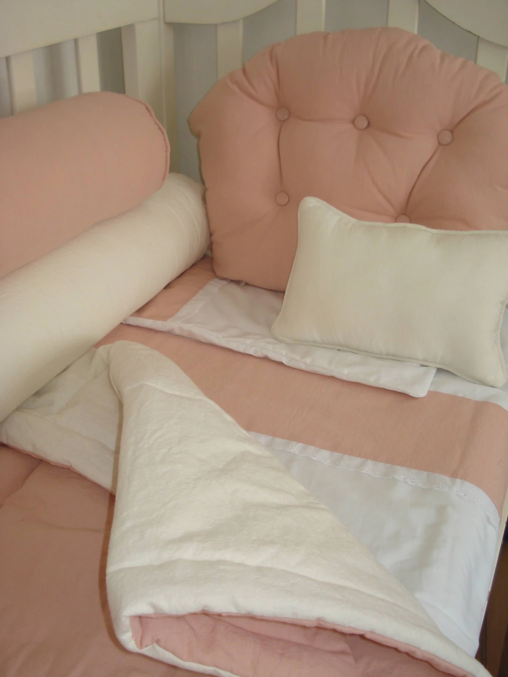 👉 1 Acolchado Reversible en tusor 100% algodón (color protagonista de un lado, reverso en blanco). Interior: guata de 3 cm de espesor.